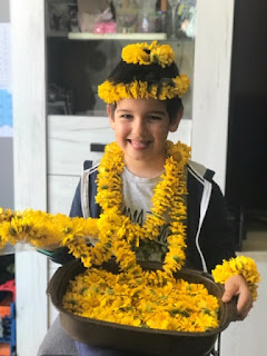 Joel fixo moitas cadenetas de pampullos para celebrar Os Maios. Estás fantástico, Joel! |